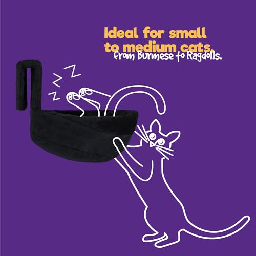 Petlicity Deluxe Radiator Cat Bed – Round Cosy Fleece Basket Hammock with Raised Rim & Strong Iron Frame for Cats, Kittens, Puppy & Small Pets – Washable Removable Cover – Black