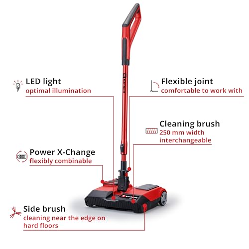 Einhell Cordless Carpet Sweeper 18V Power X-Change Lightweight Electric Broom with 250mm Wide Brush, Telescopic Handle, LED Light, Without Battery TE-FS 18 Li Solo