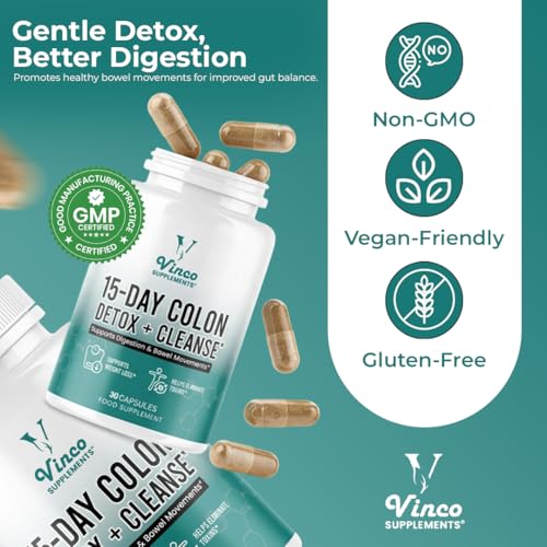 Vinco Colon Cleanse 15 Day Detox - Supports Weight Loss 30 count (Pack of 1)