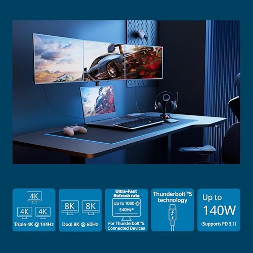 Kensington SD5000T5 EQ Thunderbolt 5 Dock – Triple 8K/4K Display, 140W PD, SD/MicroSD, Ethernet, USB-A, Space Grey (K35201EU), New