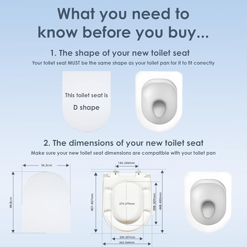AQUALONA Duroplast D-Shaped Soft Close Toilet Seat - Strong, Durable, White