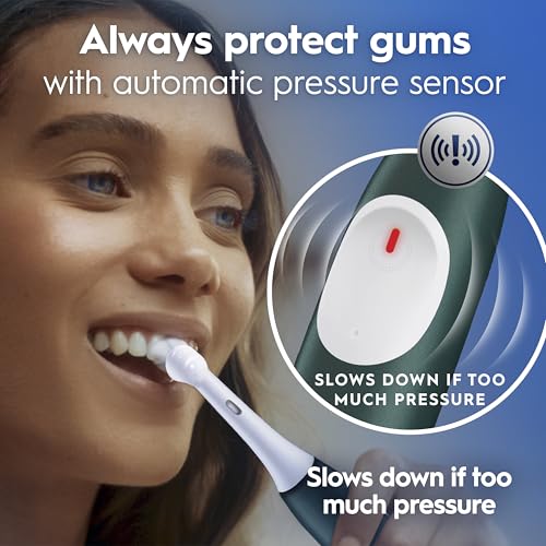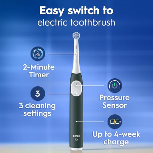 Oral-B iO2 Electric Toothbrush, 1 Gentle Care Toothbrush Head, 1 Travel Case, 1 Travel Refill Holder, Oral B Toothbrush for Adults (Forest Green), Designed by Braun, 2 Pin Plug