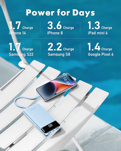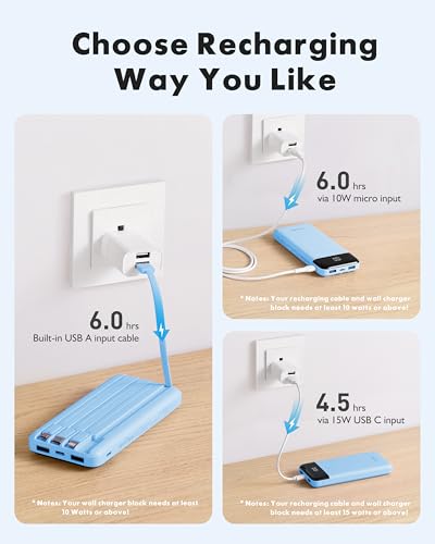 Charmast Power Bank with Built in Cables X 4, 10000mAh USB C Battery Sky Blue