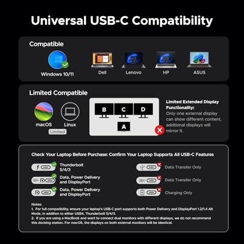UGREEN Docking Station, Triple 4K Display (2x HDMI+ DP), 14-Port USB-C Dock, 100W Max Charging for Laptop, 27W Max USBC, 10Gbps USB-C/A, 170MB/s SD, Ethernet, Audio, 140W Power Supply for Dell, HP