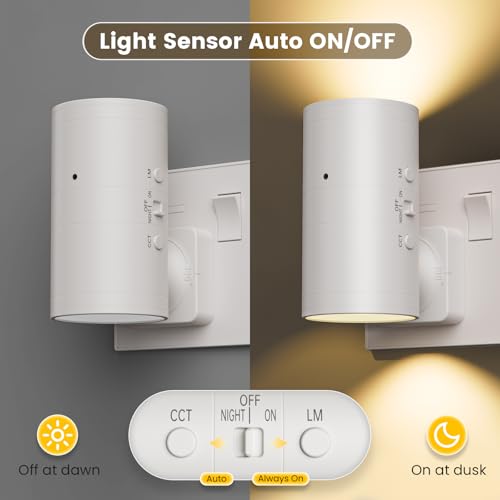 Fibrdoo Night Light Plug in, Dusk to Dawn Sensor Led Night Light with Adjustable Brightness and Color, Dimmable Nightlight for Hallway, Bedroom, Kids Room, Kitchen, Garage, Stairway