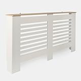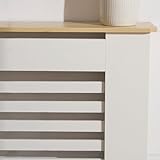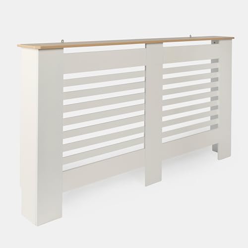 OHS Large Cream Radiator Cover with Oak Look Top, Stylish Slatted Design Frame Top Shelf Wooden Radiator Cover MDF for Living Room Bedroom Hallway