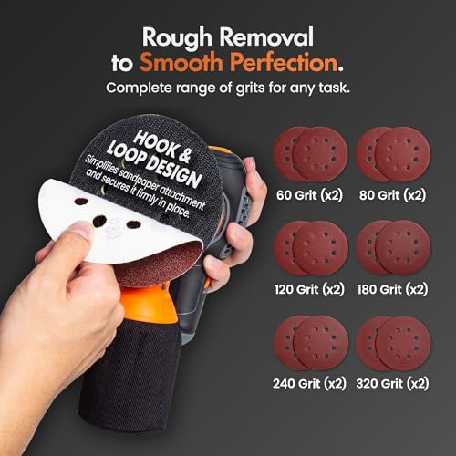 VonHaus 300W Orbital Sander – 6-Speed Electric Sander for Wood with Dust Collector, 125mm Base, 6000–12000RPM, 12 Sanding Pads (60–320 Grit), 3M Cable & Ergonomic Rubber Grip