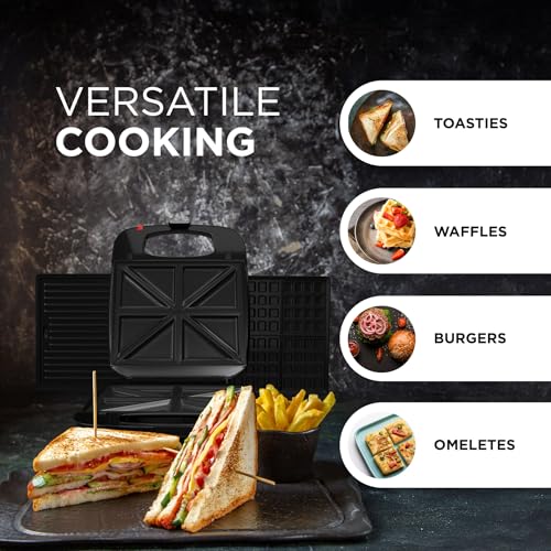 DMD Collective 4-Slice Family Sandwich Toastie Maker, Grill & Waffle Maker, Cool Touch Housing, Auto Shut Off in Black Black