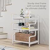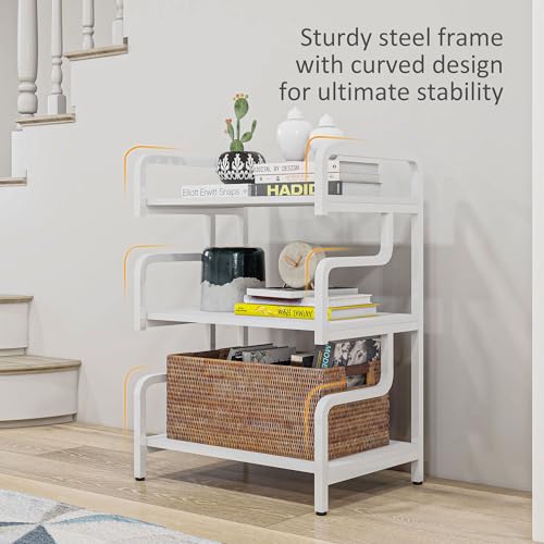 HOMCOM 3-Tier Storage Shelves, Metal Shelving Unit, Industrial Printer Table for Home Office, Display Rack for Living Room in White