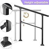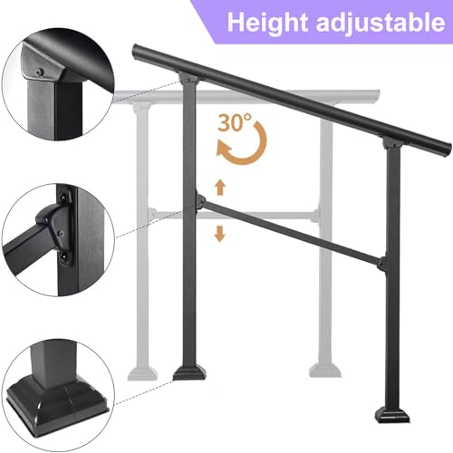 Gr8 Garden Adjustable Black Metal Mobility Handrails for Outdoor 1-4 Steps Stairs Safety Steel Porch Deck Railing Grab Handle Bar Bannister Rail