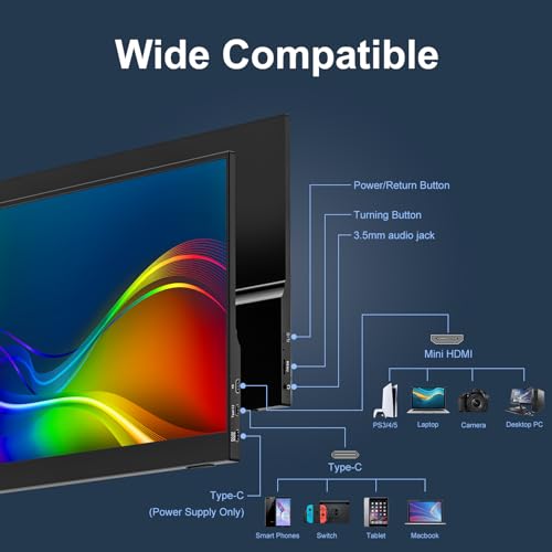 SSYA 15.6 inch Portable Screen Monitor,100% sRGB 1080P USB Type-C HDMI Black