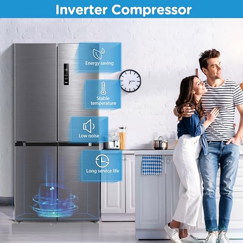 Midea MDRF632FIE46 474L Freestanding Multi-Door Fridge Freezer, Total No Frost, WiFi Smart App Control, PlasmaPure Fresh System, 305L Fridge, 169L Freezer, 83.3W x 65.3D x 177.5H cm, Stainless Steel