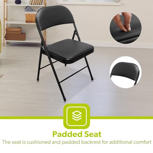 Royalford Heavy Duty Folding Padded Chair with Metal Frame Padded Seat Foldable Chair for Outdoor & Indoor Home Office Dining Easy Store Back Rest Computer Desk Chairs, Black - Pack of 4