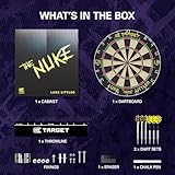 Target Darts Luke Littler Cabinet & Dartboard Set | Player Edition ‘The Nuke’ Dart Board Cupboard Set with 2 Sets of Steel Tip Darts, Score Charts, Competition Standard Throw Line