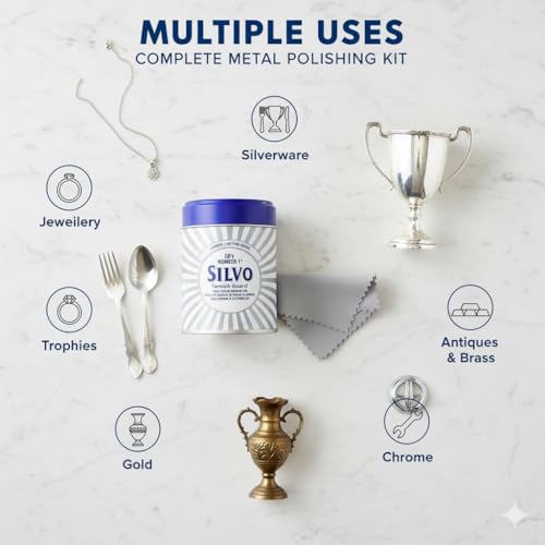 Oesmo Silvo Silver Polish Wadding Tin (75g) with 3 Microfibre Cleaning Cloths – Traditional Jewellery Cleaner & Tarnish Guard Formula for Restoring Medals, Antiques, Trophy Silverware & Gold