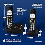 Panasonic KX-TGU133EB Digital Cordless Phone with Answering Machine, Base Unit & 3 Handsets, LCD Display, Big Buttons, Fav Call, Hearing Aid Compatible, Black