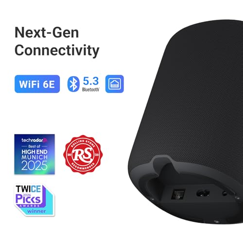 WiiM Sound Smart Speaker with 1.8″ Touch Display, Hi‑Res 24‑bit/192 kHz, AI RoomFit™ Room Correction, 100W Peak, Wi‑Fi 6E/Bluetooth 5.3, Multi‑Room & Stereo Pairing, Remote Included, Black