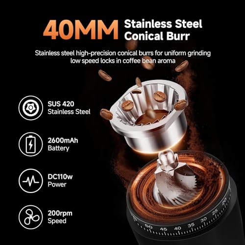 AAOBOSI Electric Burr Coffee Grinder with 60 Grind Settings, Cordless, Rechargea