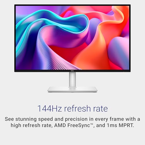 Dell 27 Plus Monitor - S2725DSM, QHD (2560x1440), 144Hz, IPS, 1ms MPRT, AMD FreeSync, 99% sRGB, Height Adjust, Built-in Speakers, DisplayPort, HDMI, 3 Year Warranty, White