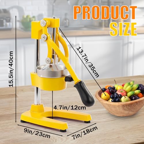 Kitchen Cast-Iron Orange Juice Squeezer - Easy-to-Clean, Professional Citrus Juicer - Durable Stainless Steel Lemon Squeezer - Sturdy Manual Citrus Press & Orange Squeezer (Bright Yellow)