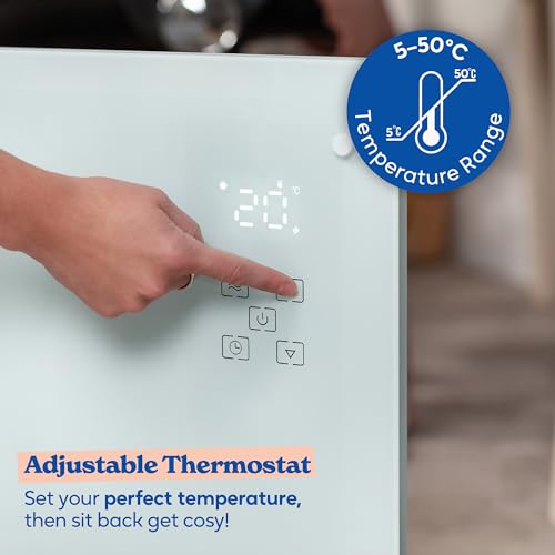 Russell Hobbs Glass Panel Electric Smart Heater WiFi Enabled 2000W with Remote Control in White, 3 Heat Modes, Touch Contol & LED Display, Auto-Adjust Temperature Sensor, Wall Mountable RHPANH2006W