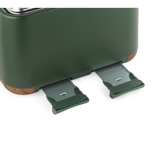 Salter Toronto Green Toaster & Kettle Set – 4-Slice 1630W Toaster with 6 Browning Levels & Wide Slots, 1.7L 3000W Rapid Boil Kettle with Limescale Filter, Auto Shut-Off & Wooden Accents