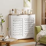 HOMCOM Radiator Cover with 2 Flip Drawers, Modern Cross Pattern MDF Cabinet Heater Cover with Top Shelf for Living Room, Bedroom, Hallway, 108W x 19D x 95.5H cm, White