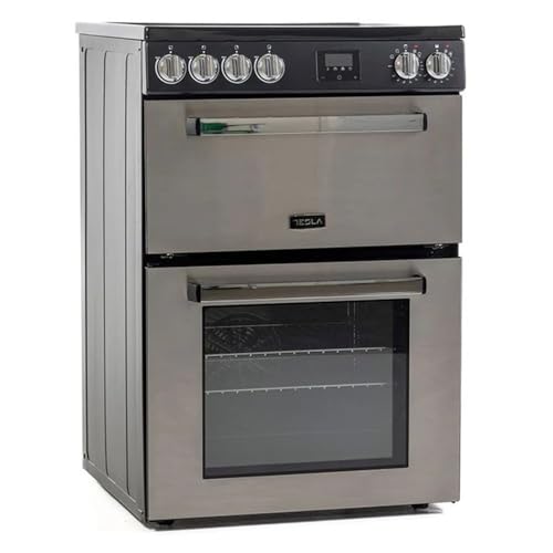 Tesla Electric Cooker - Freestanding Stainless Steel, A/A+ Energy, 4-Zone Ceramic Hob, 60cm Double Cavity, 68L & 31L Ovens, Easy Clean Enamel, LED Timer, (TMRC60SS)