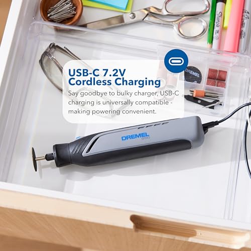 Dremel 8150 Cordless Brushless Multi Tool, Rotary Tool Kit 7.2V 2Ah USB-C Rechargeable, 20 Accessories, Variable Speed 5,000-30,000 RPM, LED Light, Cutting, Sanding, Carving, Grinding