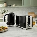Swan Solace Kitchen Set, 1.7L Kettle, 930W 2 Slice Toaster, SK19026BLK + ST1903BLK, Black