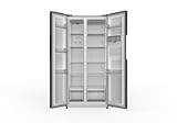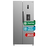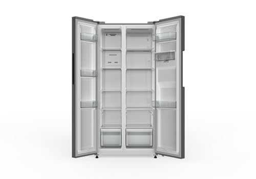 HYE American Fridge Freezer - Side By Side American Style Fridge Freezer With Water Dispenser, No Frost, 444L Freestanding Design, Low Noise (39dB), Cool Silver Finish - RF01AMWD460S03