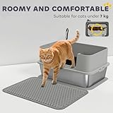 PawHut Stainless Steel Litter Box, High Sided Cat Litter Tray with Metal Scoop, Mat, Never Absorbs Odors, Anti Leakage & Easy to Clean, Pet Toilet for Big Cats, Grey
