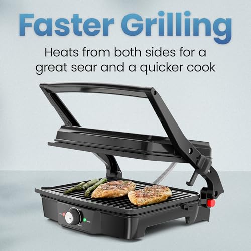 Chefman 4 Slice Panini Press, Indoor Grill and Gourmet Sandwich Maker, Nonstick Plates Open 180 Degrees, Adjustable Temperature, Floating Hinge for Thick Bread and Rolls, LED Indicators, Black