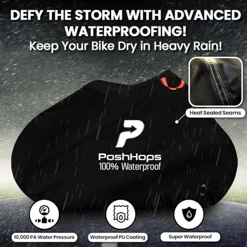 Poshhops Heavy duty Bike Cover for 1-2 Bikes, 600D Bike Covers for Outside Storage with Lock Holes, Bicycle Cover Waterproof Outdoor with Bike Storage Bag, Anti-UV, Windproof for Mountain & E-Bike