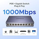 UGREEN 10 Ports POE Network Switch,8 x Gigabit PoE+ Ports & 2 Gigabit Uplink Ports Ethernet Splitter, 802.3af/at 30W,60W Total Budget,Metal Case Hub,Plug & Play for TV/Laptop/Switch/Router/Camera