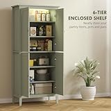 HOMCOM 176.5 cm Tall Freestanding Pantry Storage Cabinet with 4 Doors Green, Green