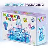 Science Kidz Magnetic Tiles For Girls - 114 Piece Princess Castle Set, 2 Play Figures & Storage Bag - Magnetic Building Blocks For Kids - Birthday Gifts Toys For 3, 4, 5, 6, 7 Year Old Girls - Magnet