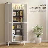 HOMCOM Tall Kitchen Cupboard with Motion Sensor LED Light, 3-Colour Dimmable Lighting, 177 cm Freestanding Storage Cabinet with Doors and Adjustable Shelves, White