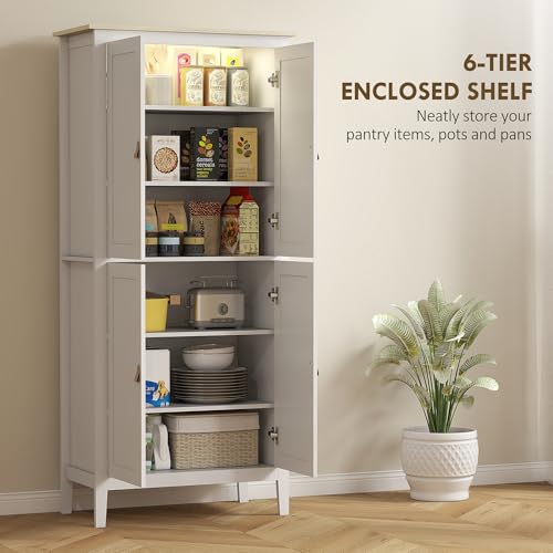 HOMCOM 176.5 cm Tall Freestanding Pantry Storage Cabinet with 4 Doors White, White