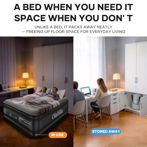 OlarHike Double Airbed with Built-in Pump, 50cm High Raised Inflatable Mattress