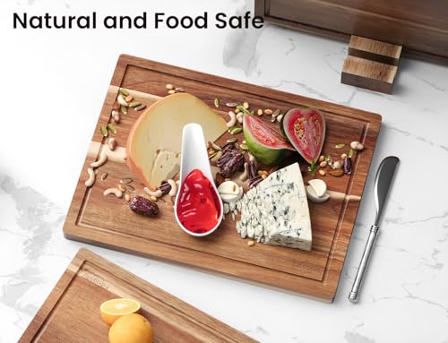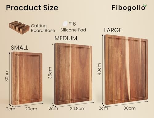 Fibogollo Acacia Wood Chopping Boards Set of 3 with Juice Groove and Stand