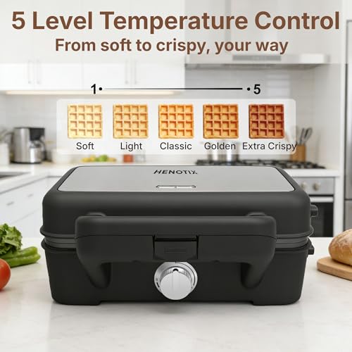 Henotix Waffle Maker 3 in 1 with Removable Plates, Sandwich & Toastie Maker with 5 Adjustable Temperature Control, 1200W Fast Cooking for Grill, Safe Knob, Non Stick Coating, Cool Touch Handle