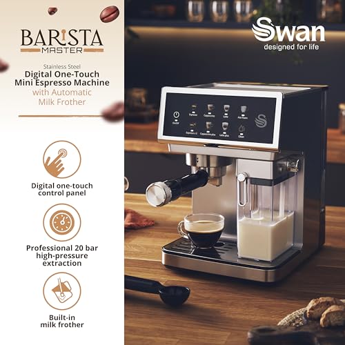 Swan SK22154 Digital Espresso Coffee Machine, 20 Bar Pressure, Auto Milk Frother