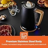 GEEPAS Kitchen Set NordiQ Design | Matte Finish with Wood Accents (Black, Kettle, 2 Slice Toaster & Microwave Set)