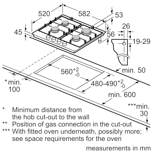 Bosch, Series 4, PGP6B5K90 60cm Gas Hob with 4 burners, 2 Dishwasher suitable cast iron pan supports, new standard sword dials, Front control