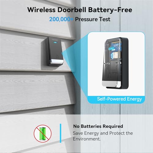 TECKNET Self-Powered Doorbell with 3 Black-1 Transmitter 3 Receivers