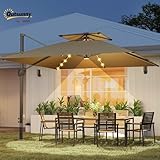 OUTSUNNY Garden Cantilever Parasol with LED Lights Crank Tilt Aluminium Pole UV50+ in Khaki Khaki