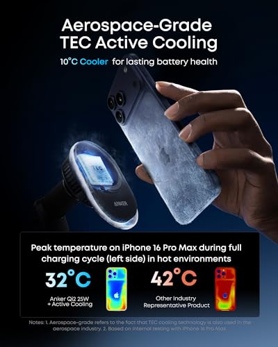 Anker Prime MagSafe Car Mount Charger Qi2 25W Wireless TEC Cooling Strong Magnet