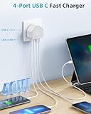 2-Pack USB C Plug Fast Charge, 40W 4-Port USBC UK 4-Port, White