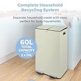 Tower Recycling Pedal Pin with Two 30L Compartments, Two Inner Buckets, Stainless Steel Body, 60L, Cream